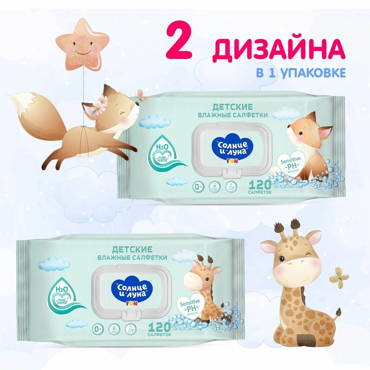 Влажные салфетки детские с крышкой 1440 шт (120 шт х 12), солнце И луна информация: