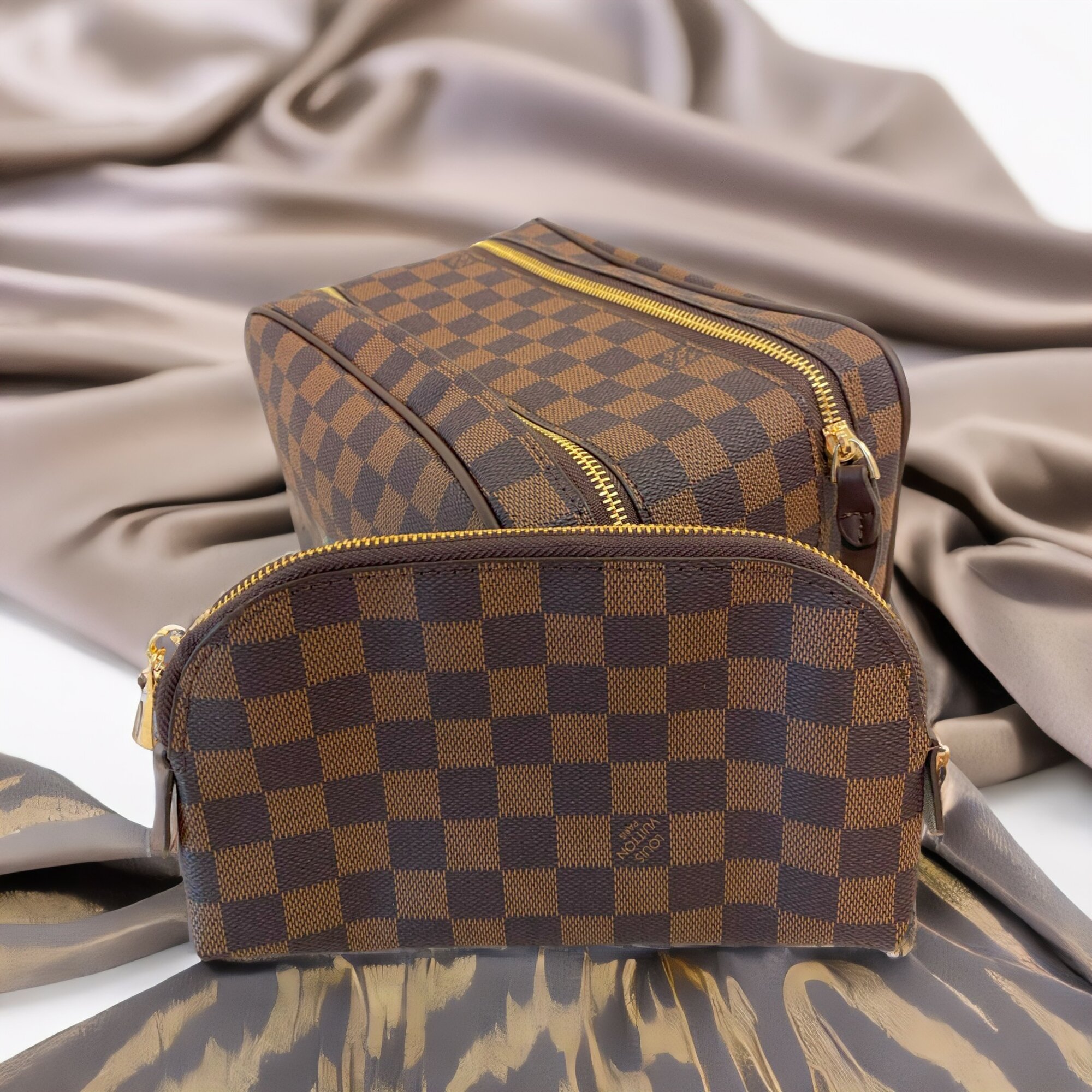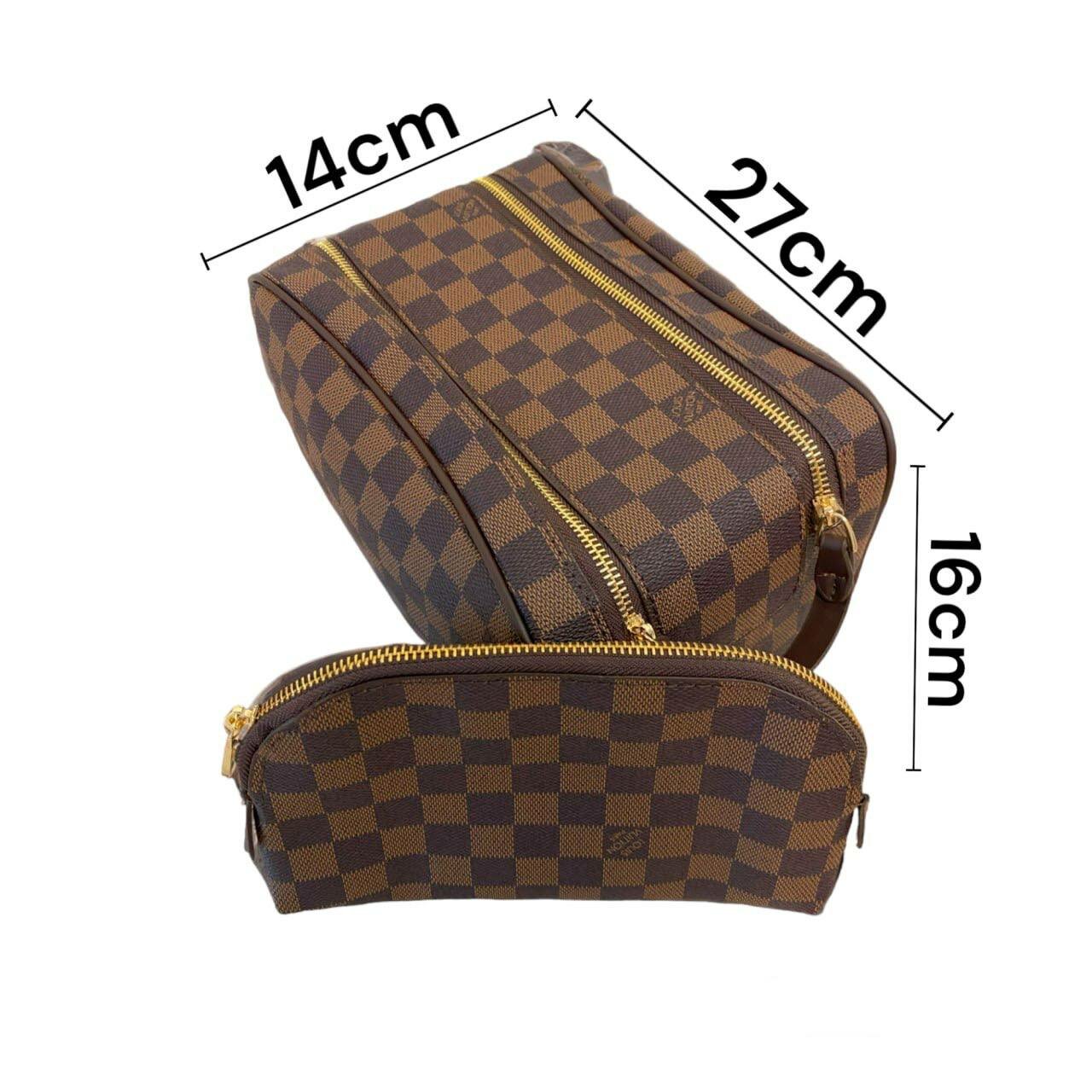 Отзывы на Косметичка женская дорожная + маленькая косметичка в подарок. Шахматный рисунок LV