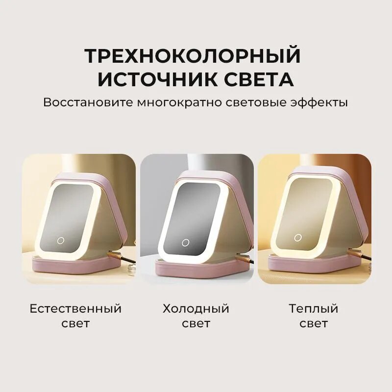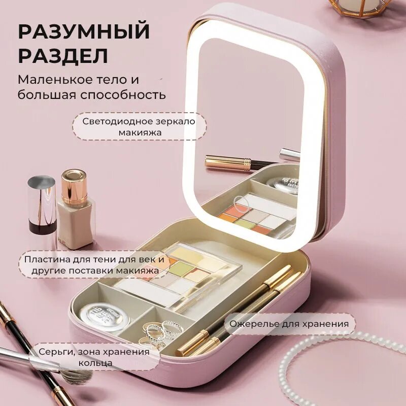 10 цен на Дорожный чемодан для макияжа со светодиодной подсветкой и зеркалом, розовый