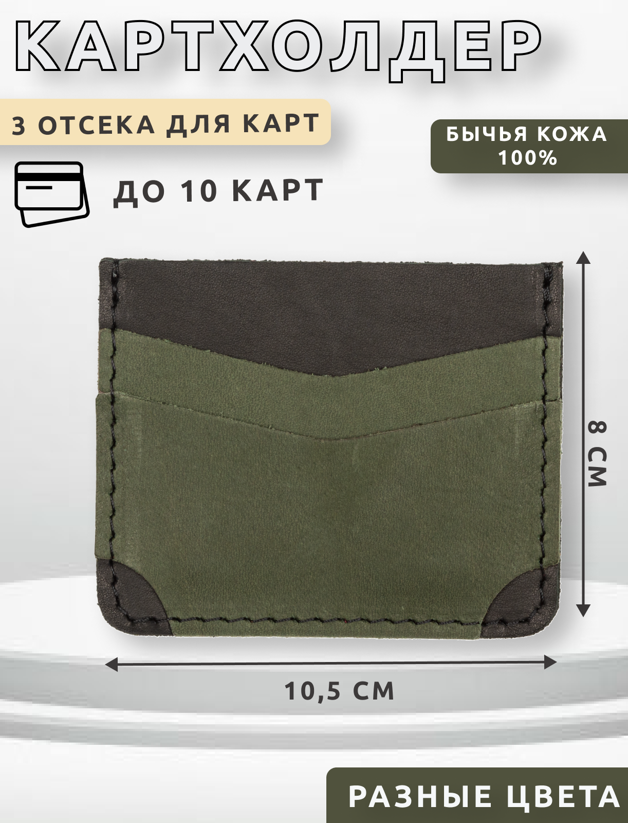 10 цен на Визитница кожаная картхолдер для карт, черная с зеленым