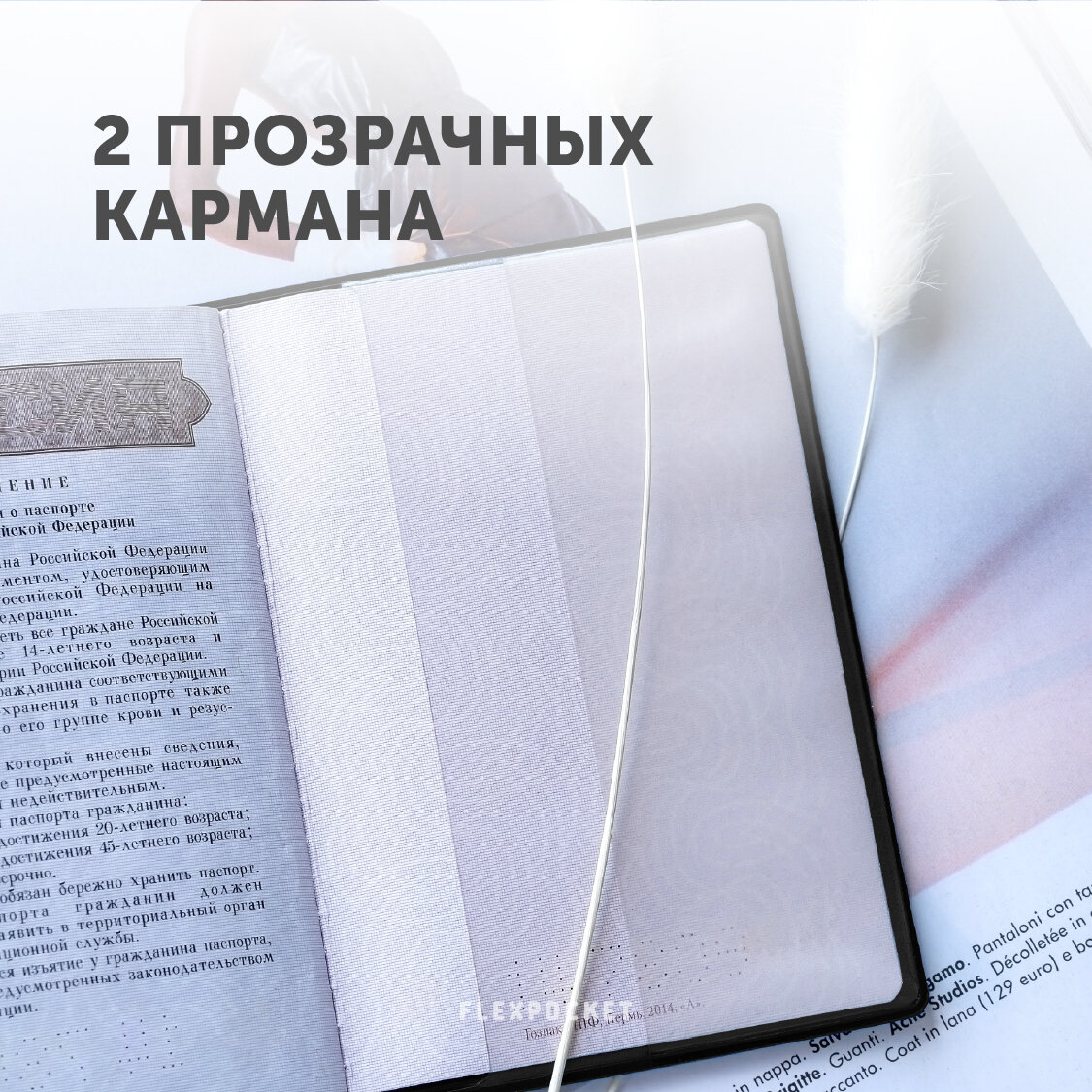 Обложка для паспорта Flexpocket из экокожи classic с дополнительными отделениями для документов (СТС, снилс, права), цвет черный 315 ₽