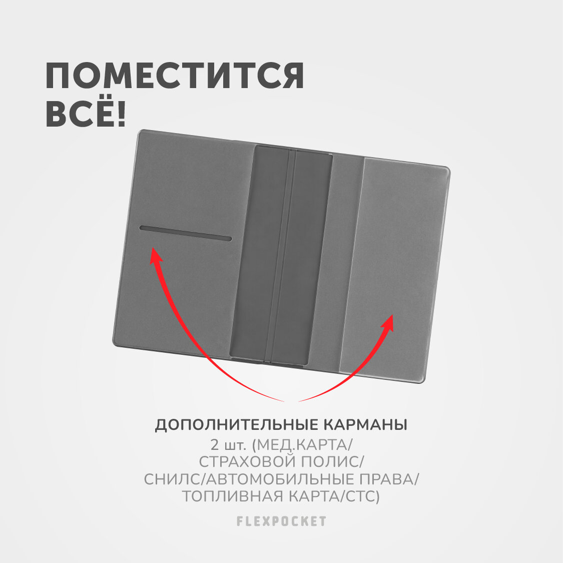 Отзывы на Обложка для паспорта Flexpocket из экокожи classic с дополнительными отделениями для документов (СТС, снилс, права), цвет серый
