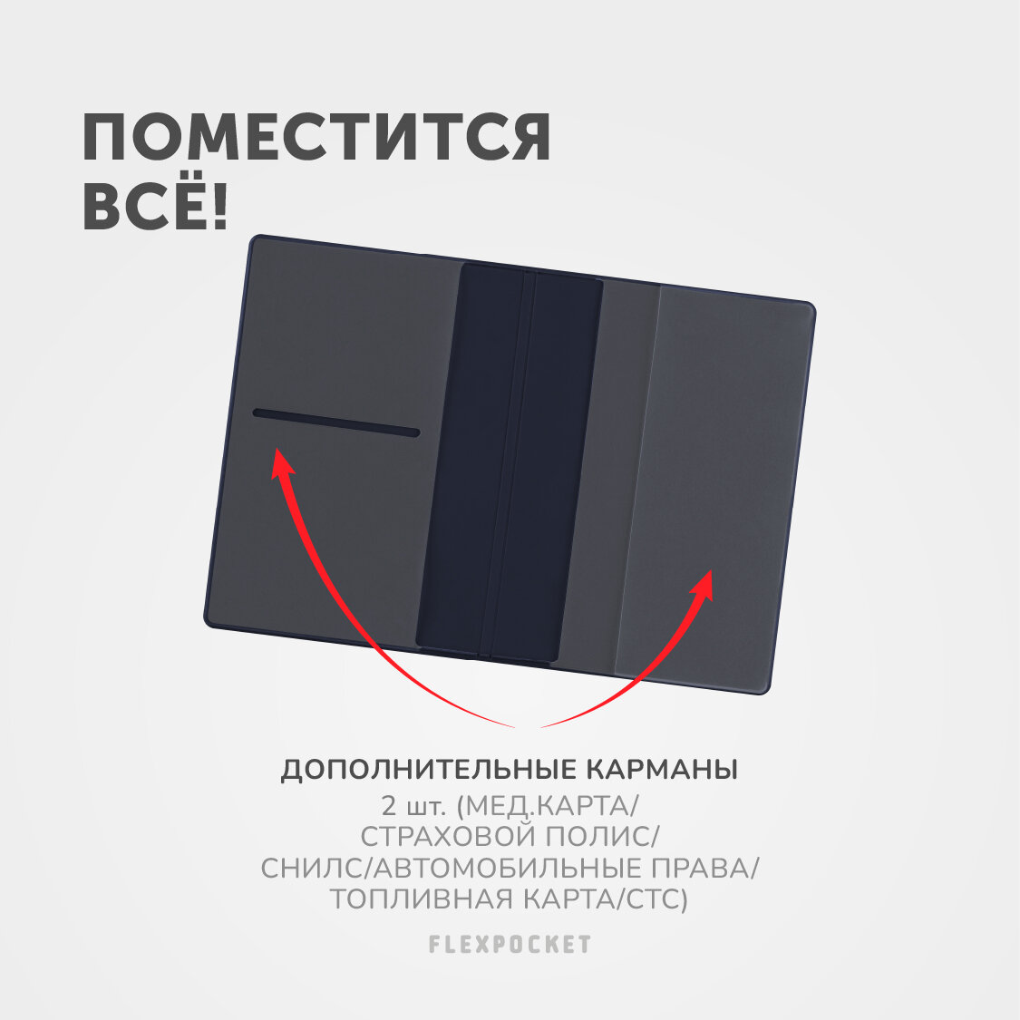 Обложка для паспорта Flexpocket из экокожи classic с дополнительными отделениями для документов (СТС, снилс, права), цвет темно-синий 315 ₽