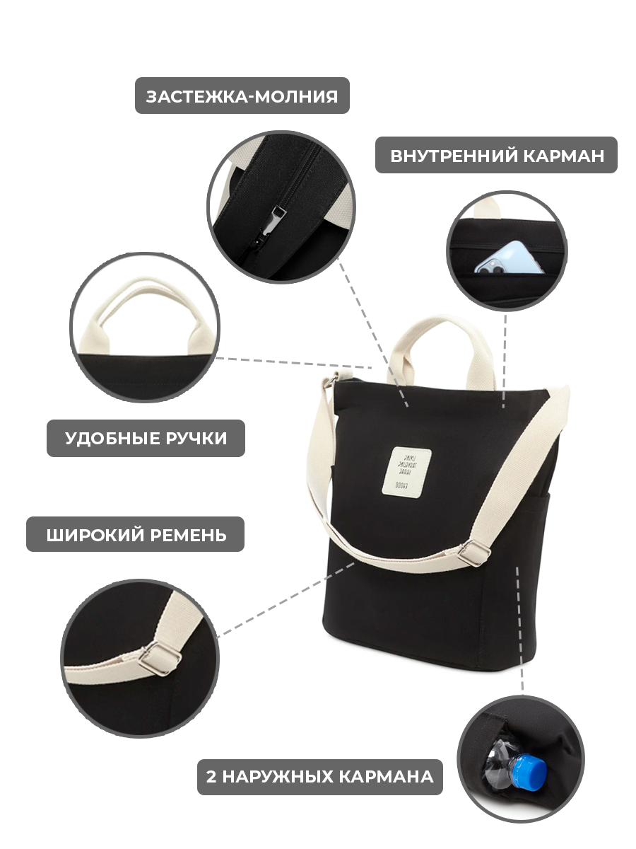 Шоппер на молнии сумка женская через плечо шопер черный информация:
