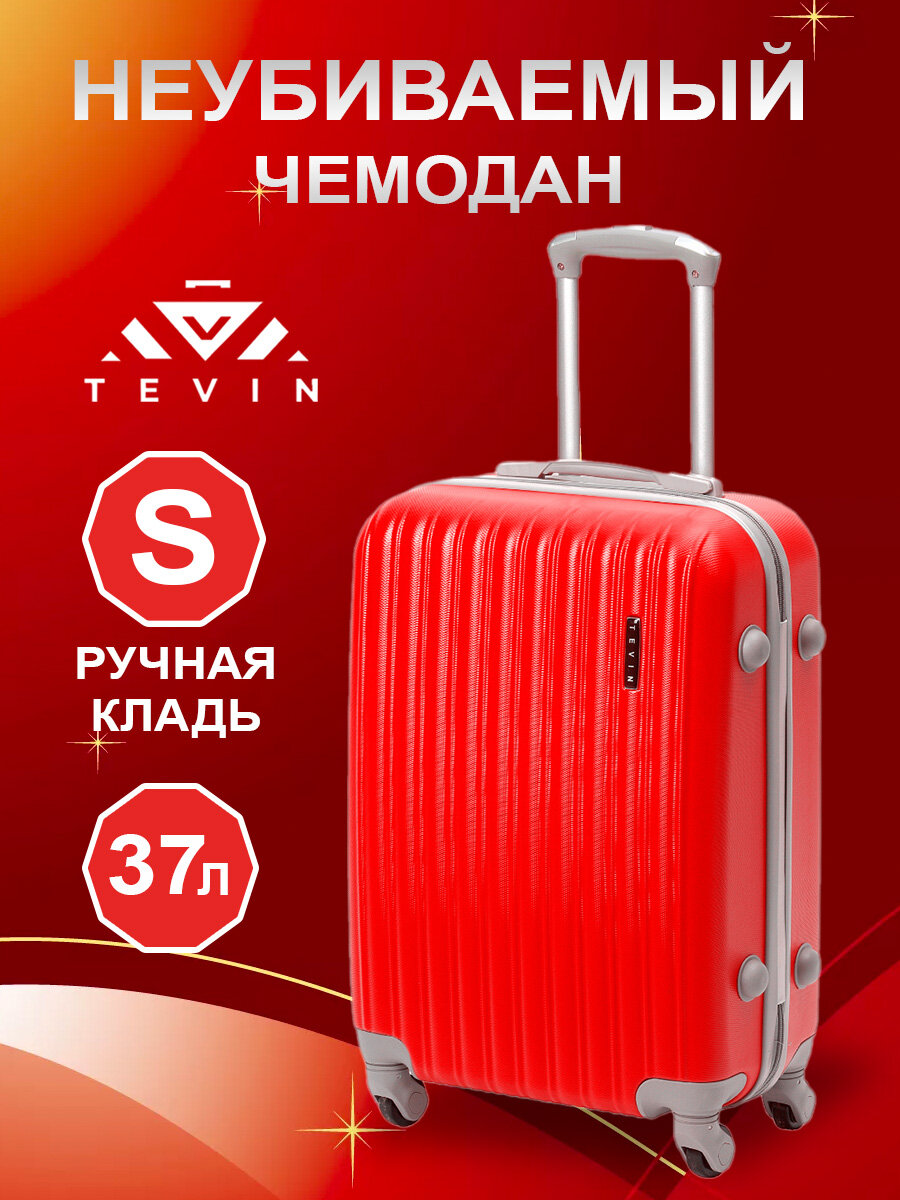 10 цен на Чемодан на колесах дорожный ручная кладь в самолет s TEVIN размер С компактный 55 см ручной 37 л cabin 21" легкий и прочный абс пластик Коралловый