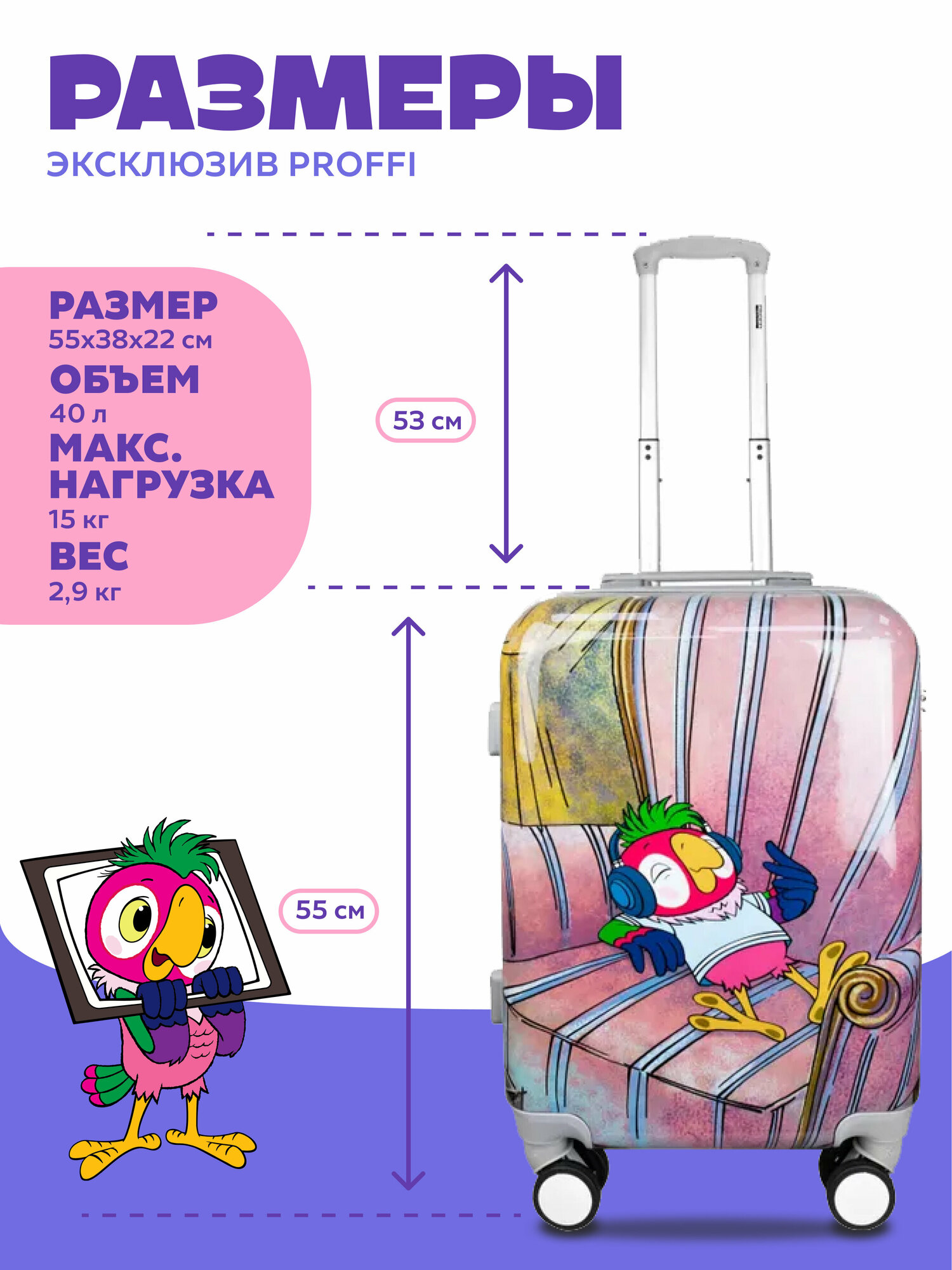 Чемодан пластиковый Кеша 4х колесный S информация: