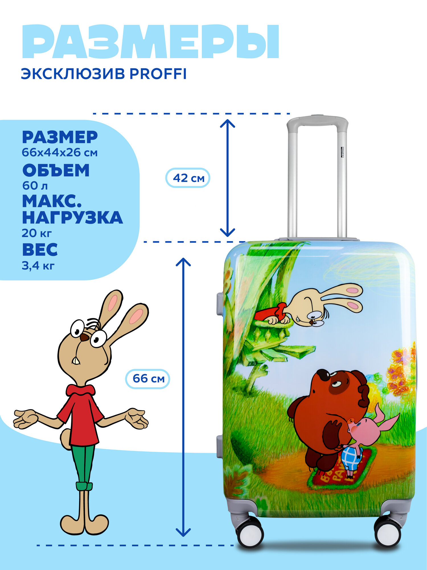 Чемодан пластиковый Винни 4х колесный M информация: