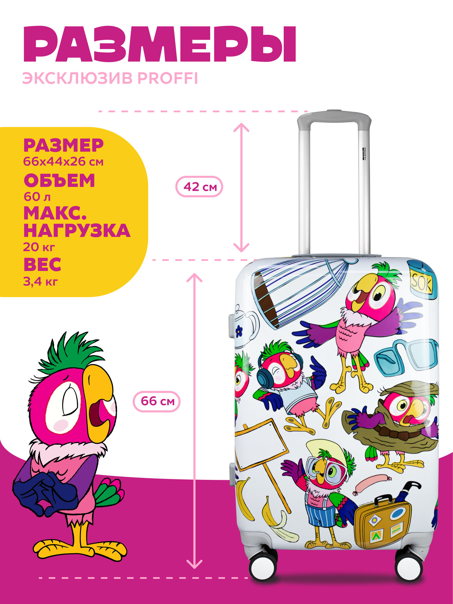 Чемодан пластиковый Кеша Герой 4х колесный M информация: