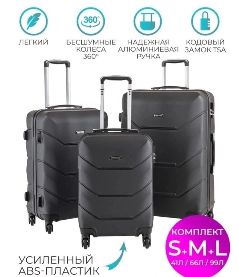 10 цен на Чемодан FreeDom 66 л, размер M, черного цвета, ударопрочный, 4 колеса