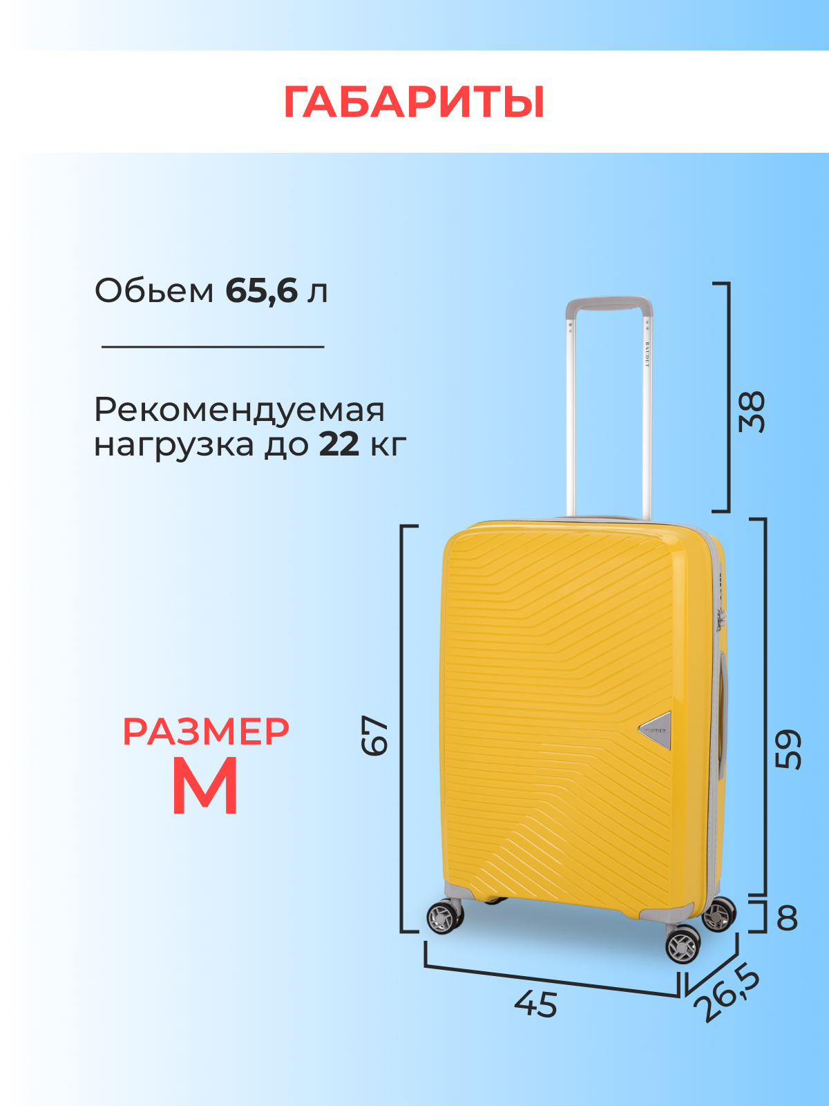 Чемодан на колесах BAUDET 812-67 (желтый) M-средний, из полипропилена, 65,6 л информация: