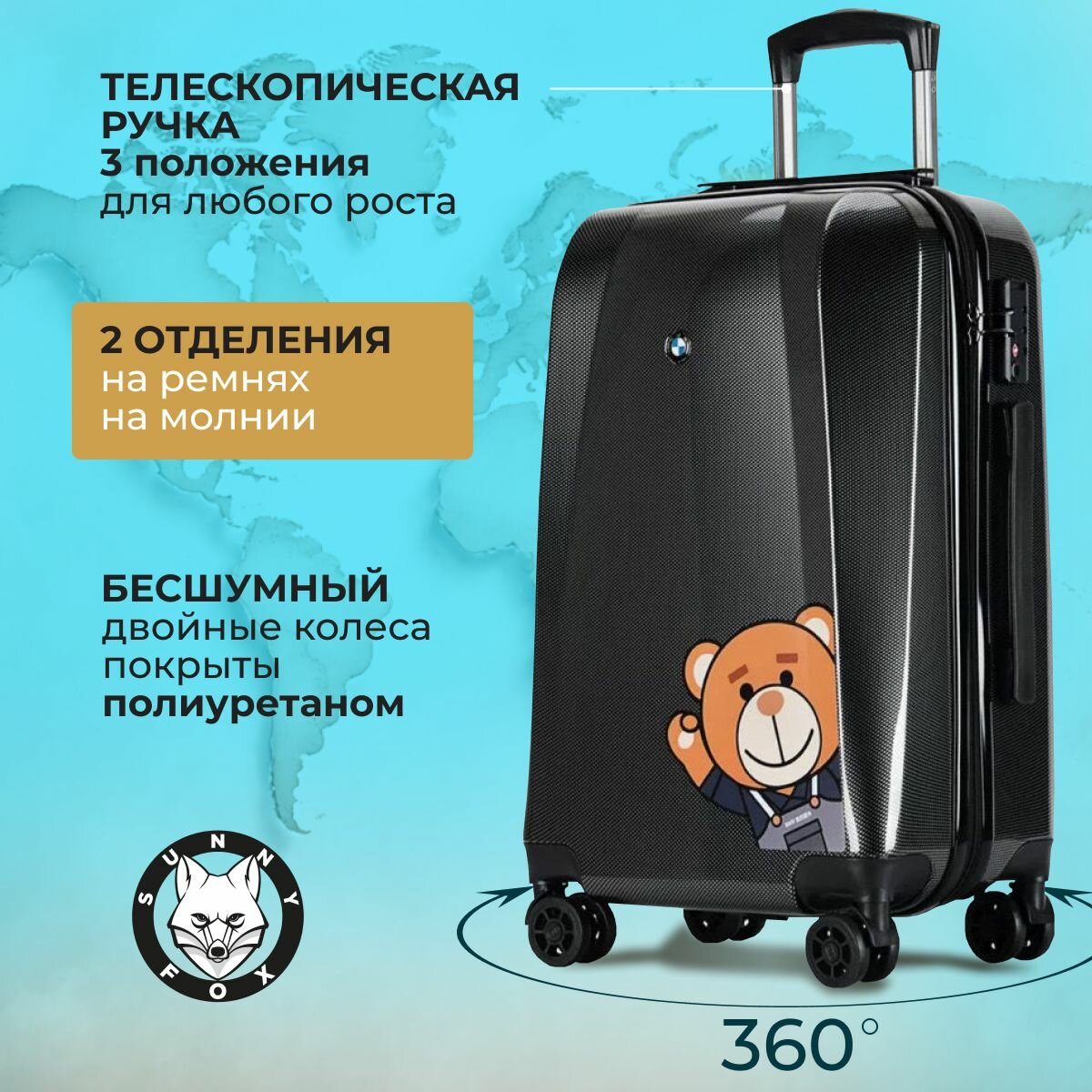 Отзывы на Стильный чемодан на колёсах Sunny fox Carbon черный размер M / Дорожный чемодан на колёсах для путешествий. Серия БМВ