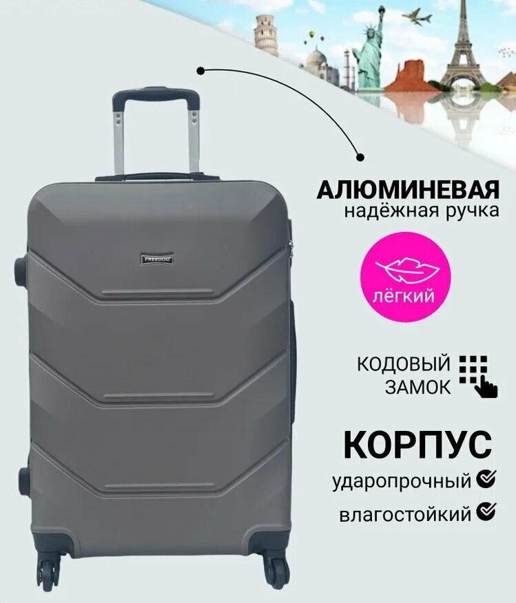 Чемодан ударопрочный FreeDom, размер L, 99 литров, 74 см, серебристо-серый, лучшии 6 200 ₽