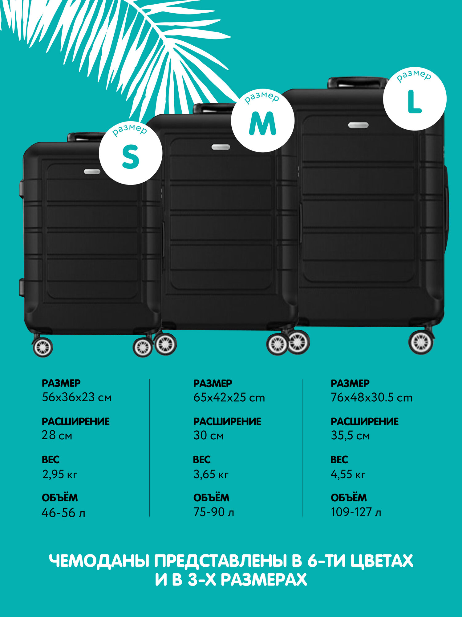 Дорожный чемодан на колесах L маленький, ударопрочный из полипропилена черный информация: