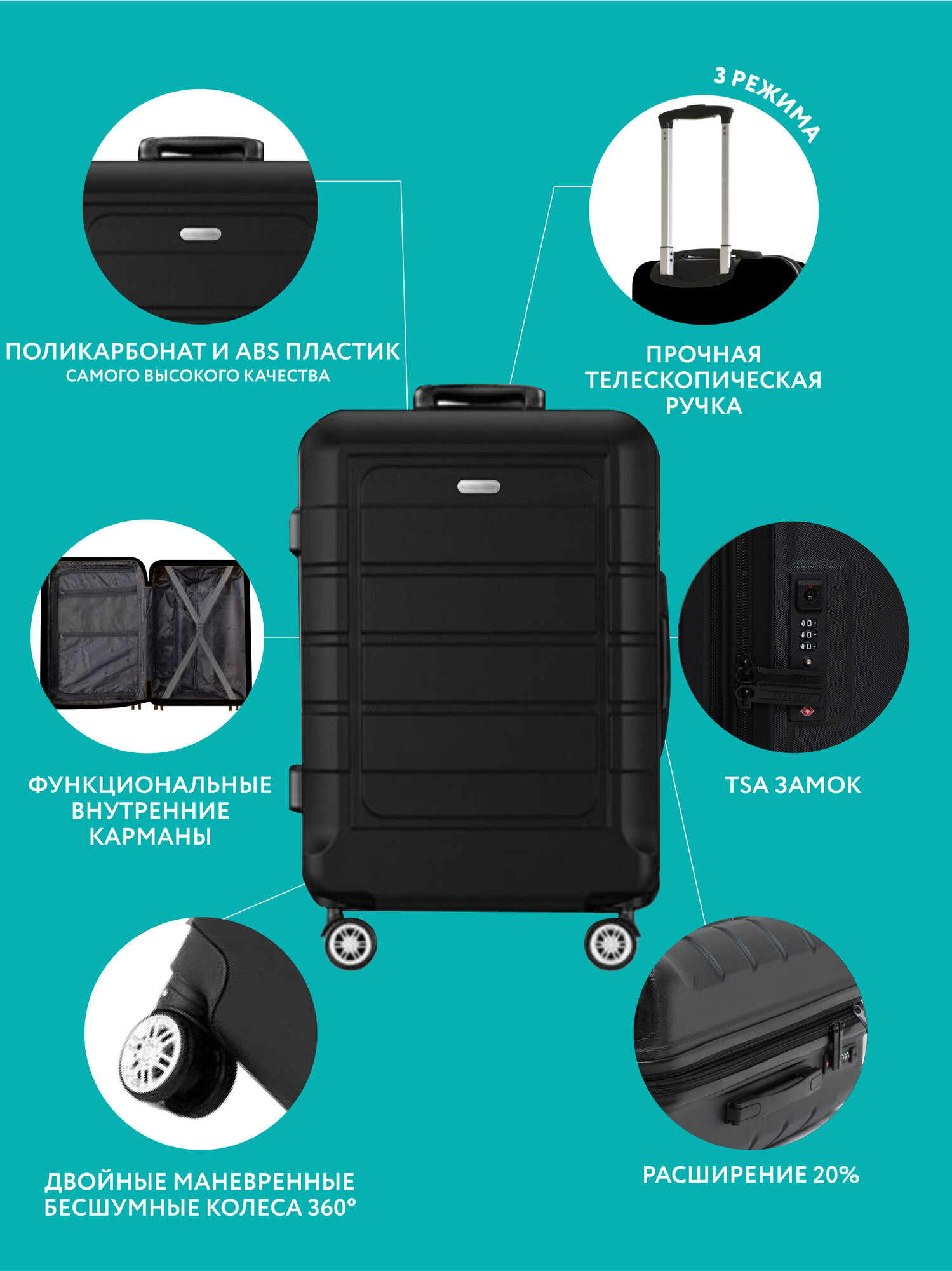 Отзывы на Дорожный чемодан на колесах L маленький, ударопрочный из полипропилена черный