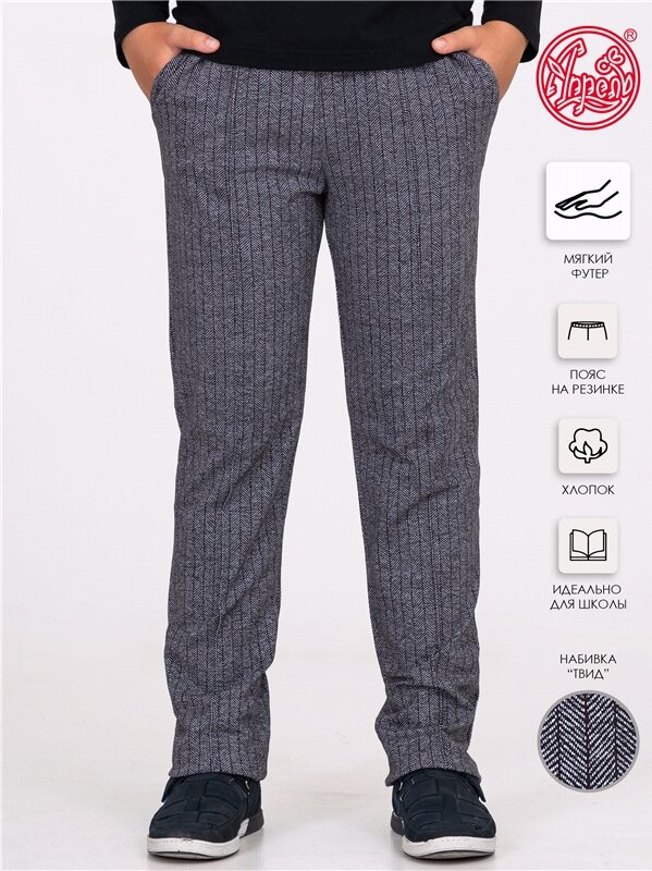 Брюки для мальчика школьные трикотажные на резинке Апрель 1ПББ837258н/1386/*/5245/*/*/*/* серый,синий 140-72 1 249 ₽