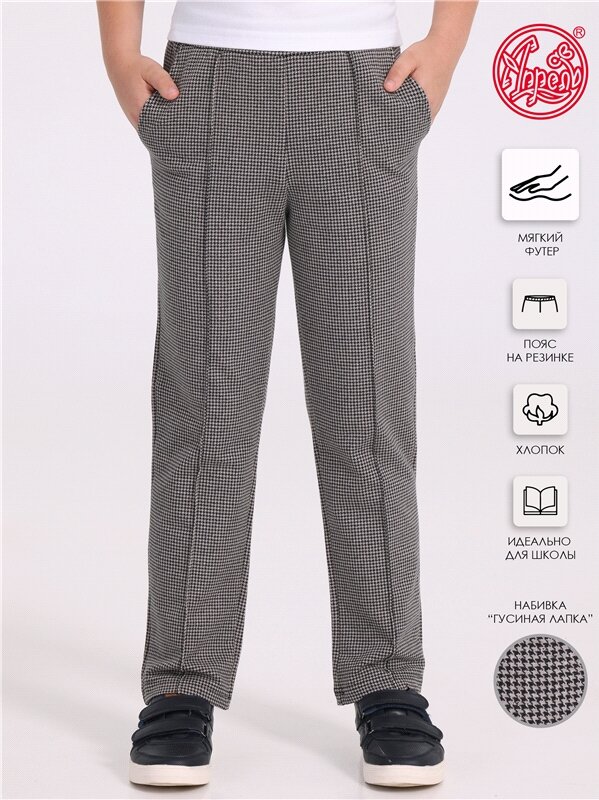 10 цен на Брюки для мальчика школьные трикотажные на резинке Апрель 1ПББ837258н/1386/*/4820/*/*/*/* черный,серый 72-140