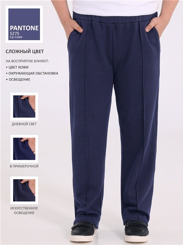 10 цен на Брюки для мальчика школьные на резинке трикотаж костюмный жаккард Апрель 1ПББ4417176/1386/*/5150/*/*/*/* синий 64-128