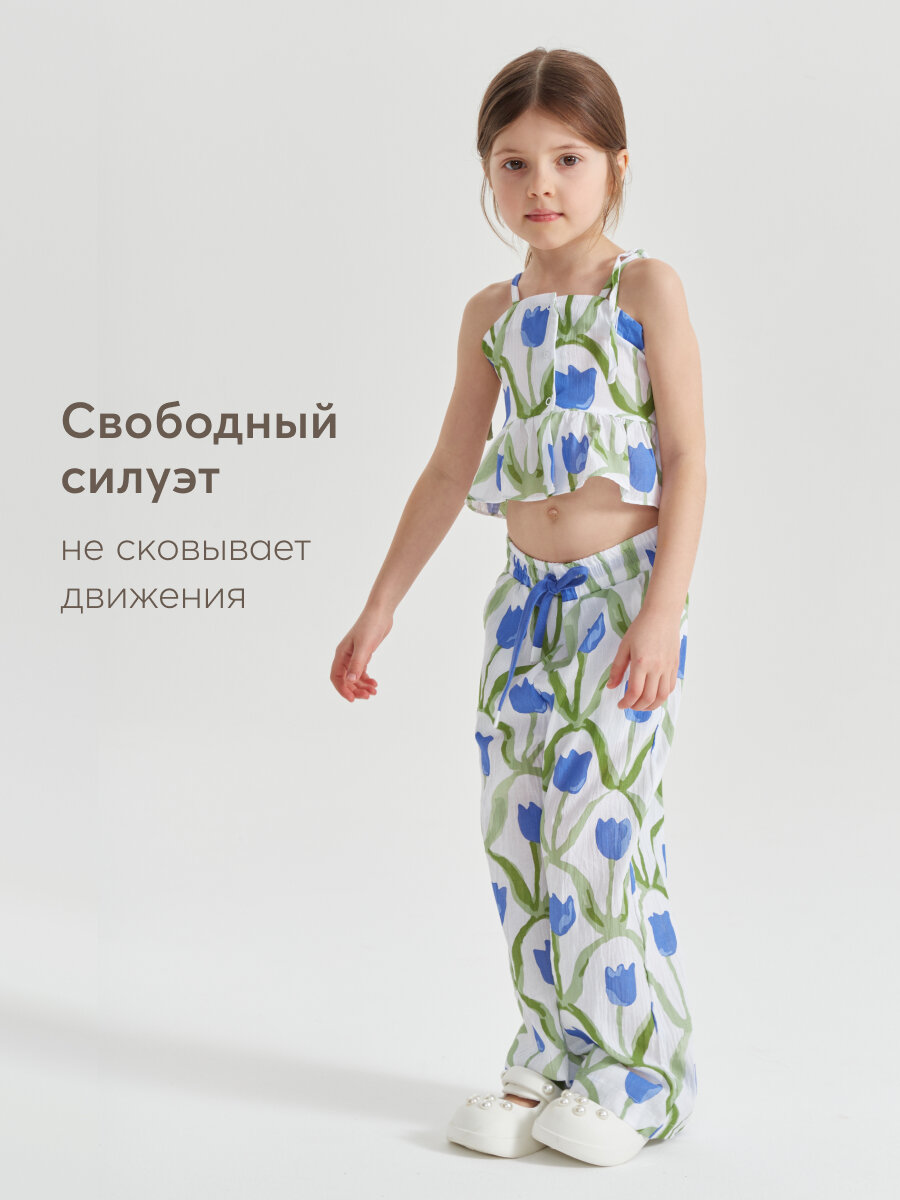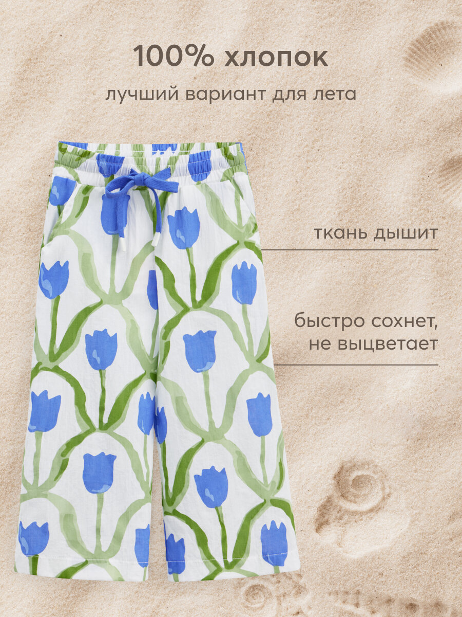 88190, Брюки детские Happy Baby, брюки летние хлопковые на завязках, одежда для девочки и мальчика, с цветами, размер 116-122 1 772 ₽