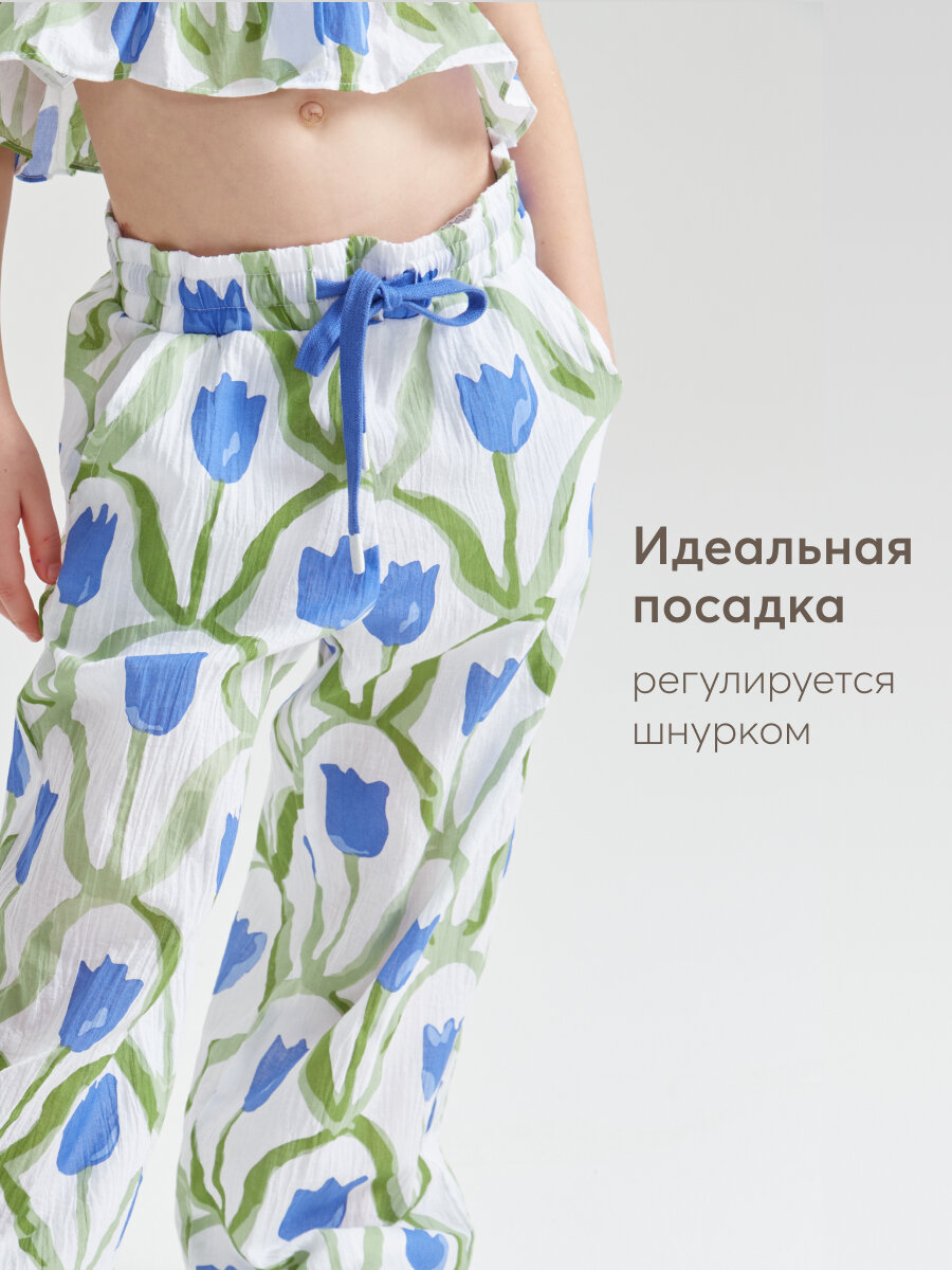 88190, Брюки детские Happy Baby, брюки летние хлопковые на завязках, одежда для девочки и мальчика, с цветами, размер 128-134 1 772 ₽