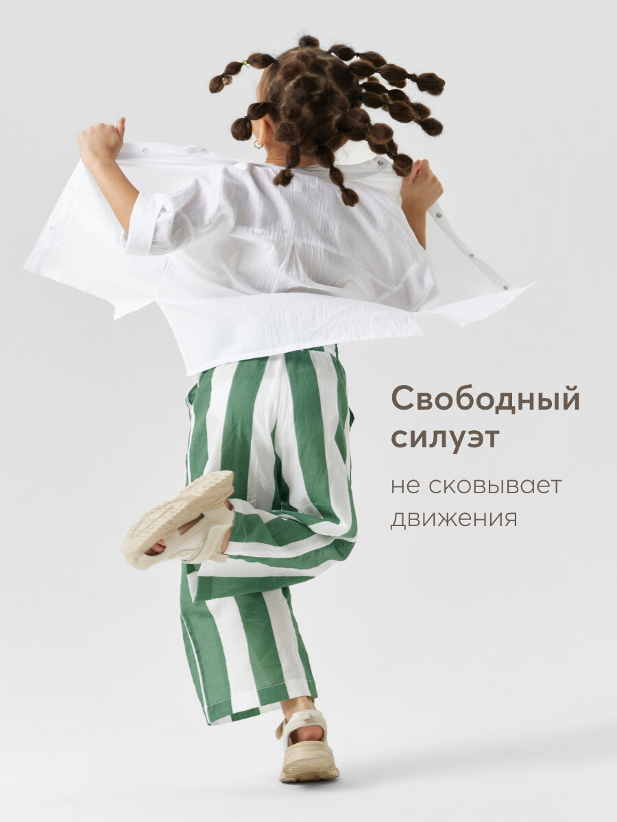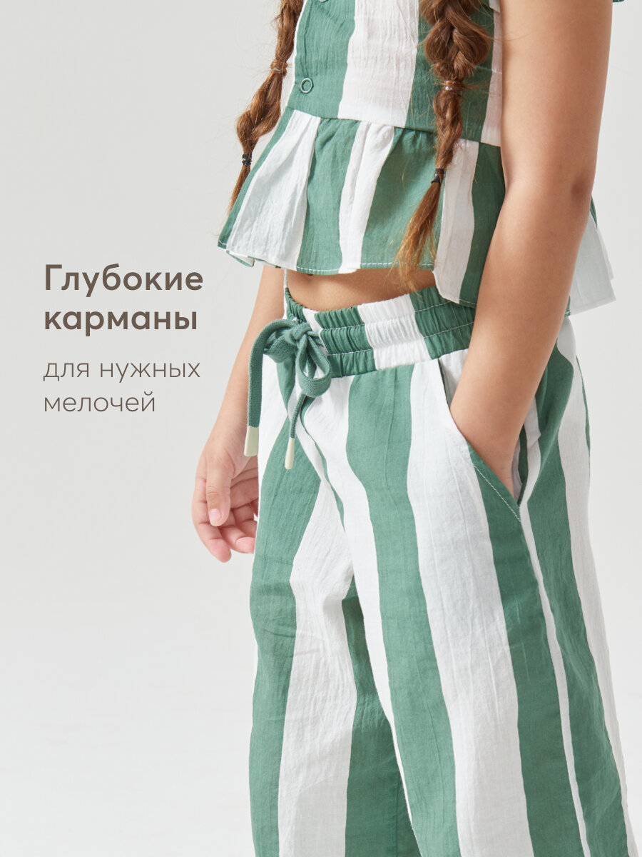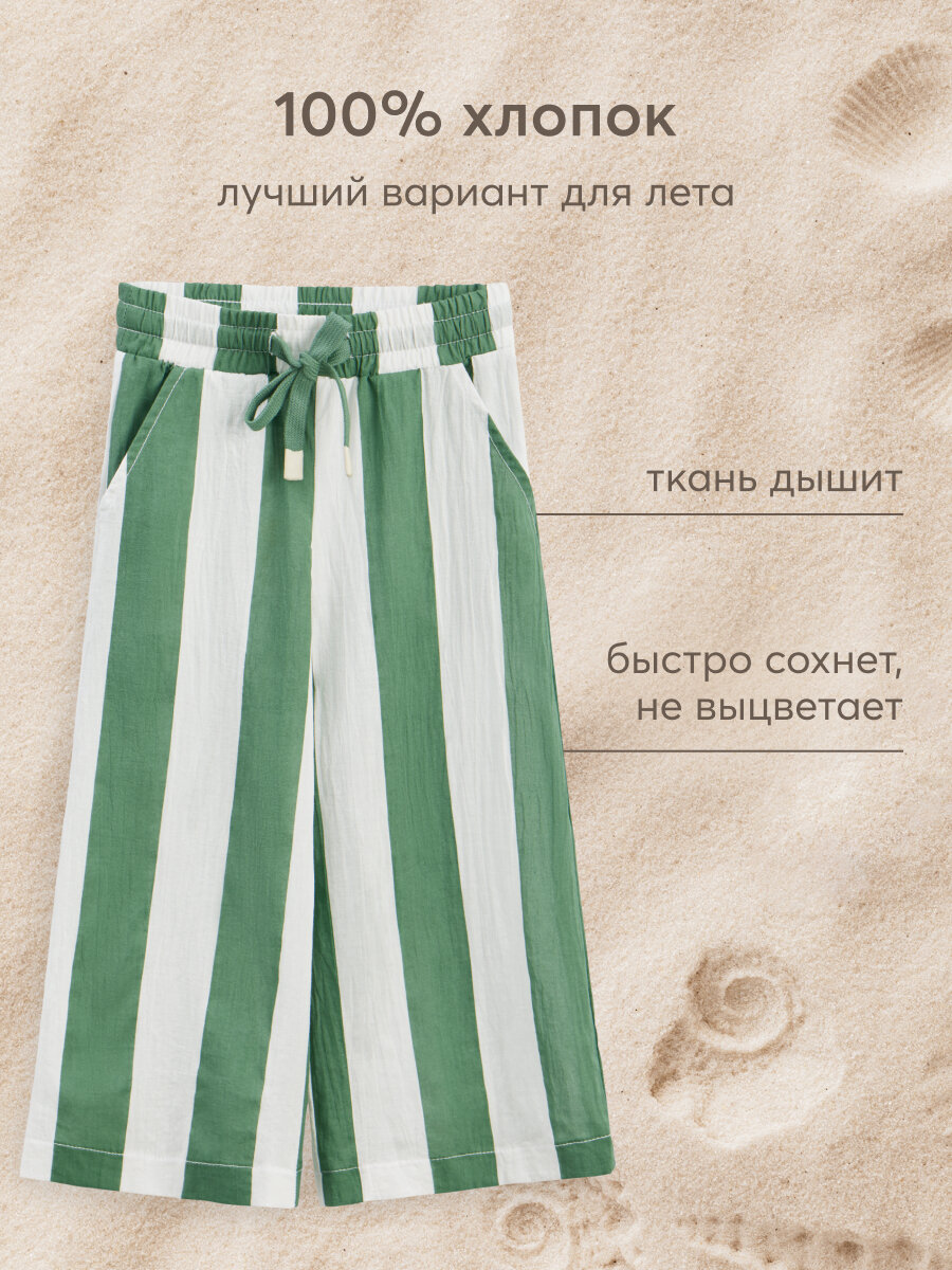 88190, Брюки детские Happy Baby, брюки летние хлопковые на завязках, одежда для девочки и мальчика, зеленые в полоску, размер 116-122 1 772 ₽