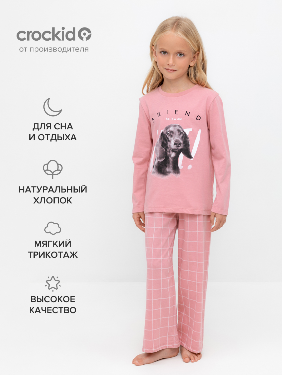 Пижама для девочки, Crockid К 1623/дымчатая роза,двойная клетка р 64/122 1 439 ₽