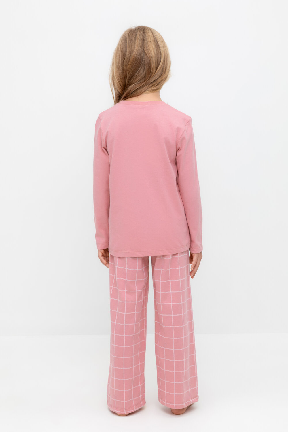 Комплект пижамы для девочки, Crockid К 1642/розовый зефир, двойная клетка р 72/140