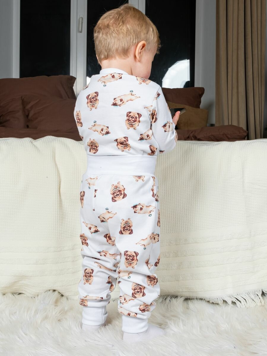 Пижама детская со штанами LEVA, размер 80-86, мопсы 1 120 ₽