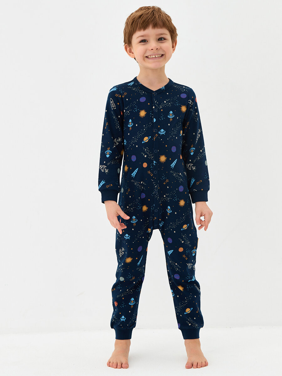 Комбинезон для сна для мальчика,KOGANKIDS,тёмно-синий набивка галактика, 104 / 4 года информация: