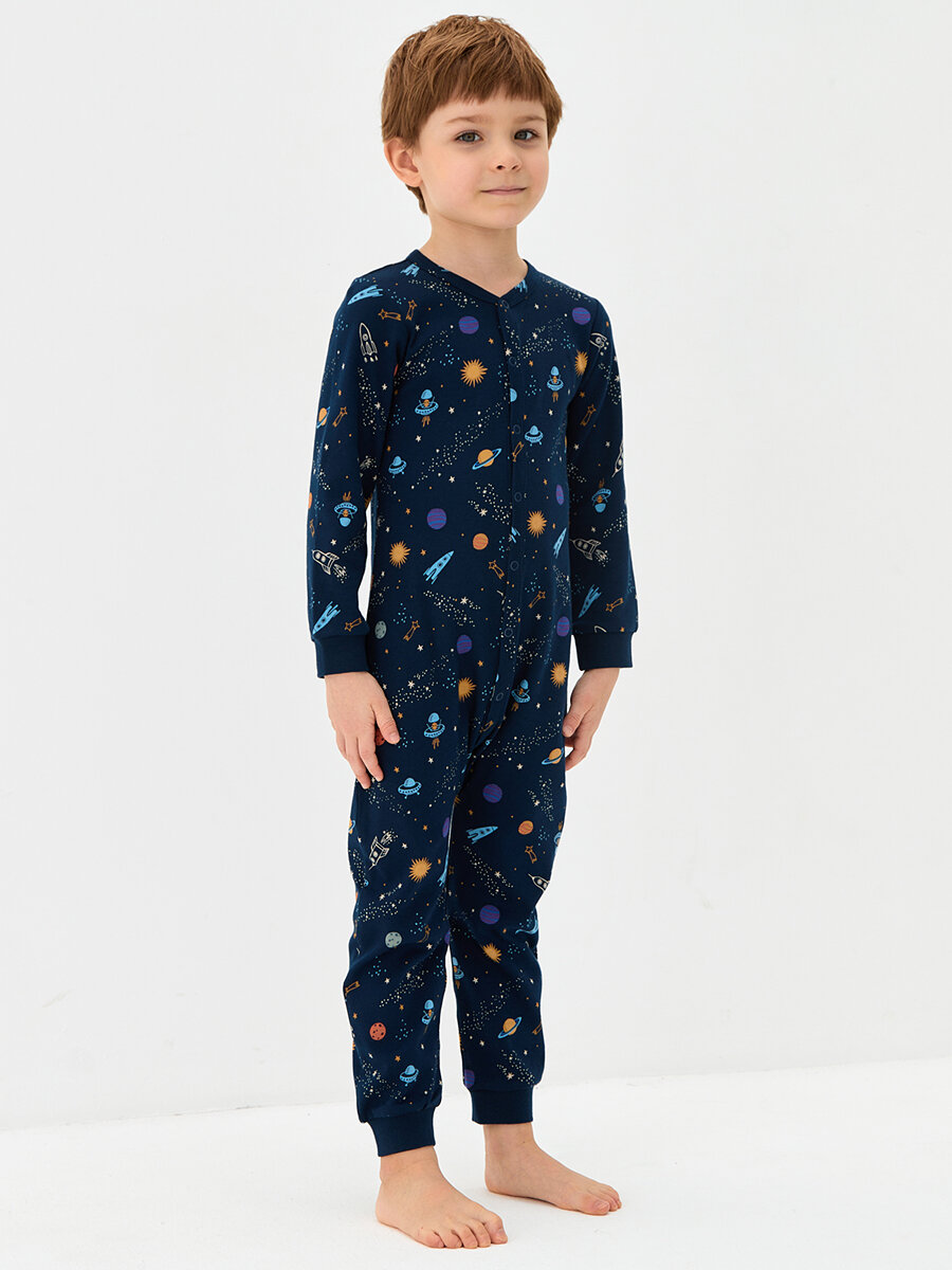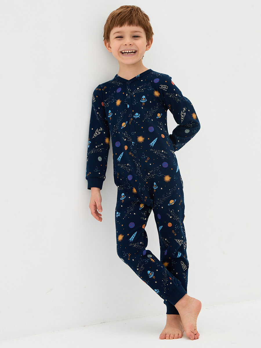 Комбинезон для сна для мальчика,KOGANKIDS,тёмно-синий набивка галактика, 116 / 6 лет информация: