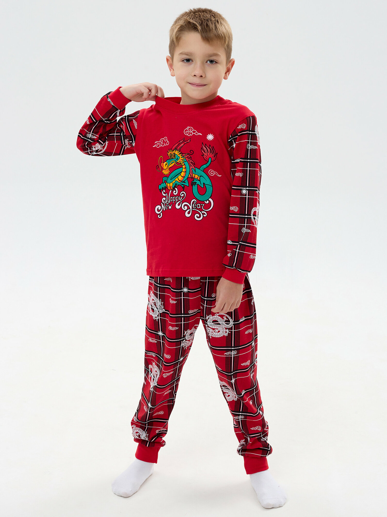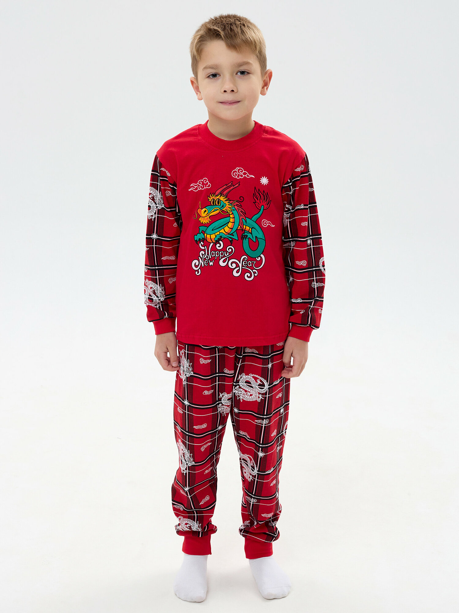 10 цен на Новогодняя пижама без начеса, клетка дракон, размер 98