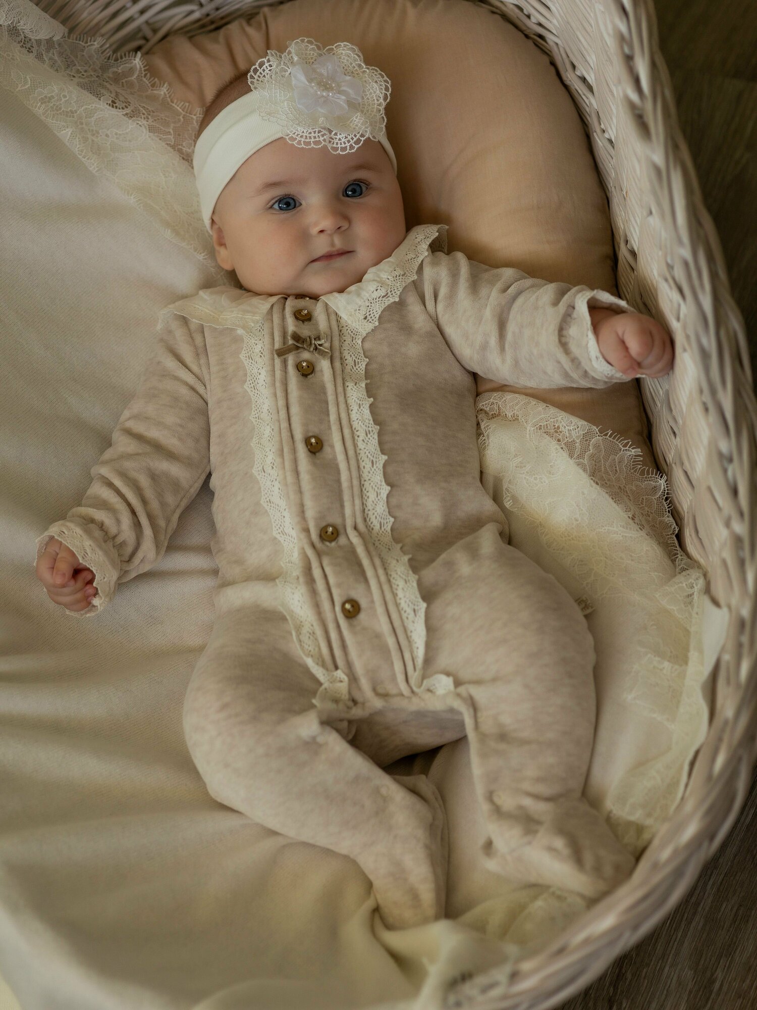 Комбинезон Наследникъ Выжанова Базовая коллекция, открытая стопа, размер 3-6 мес, натуральный