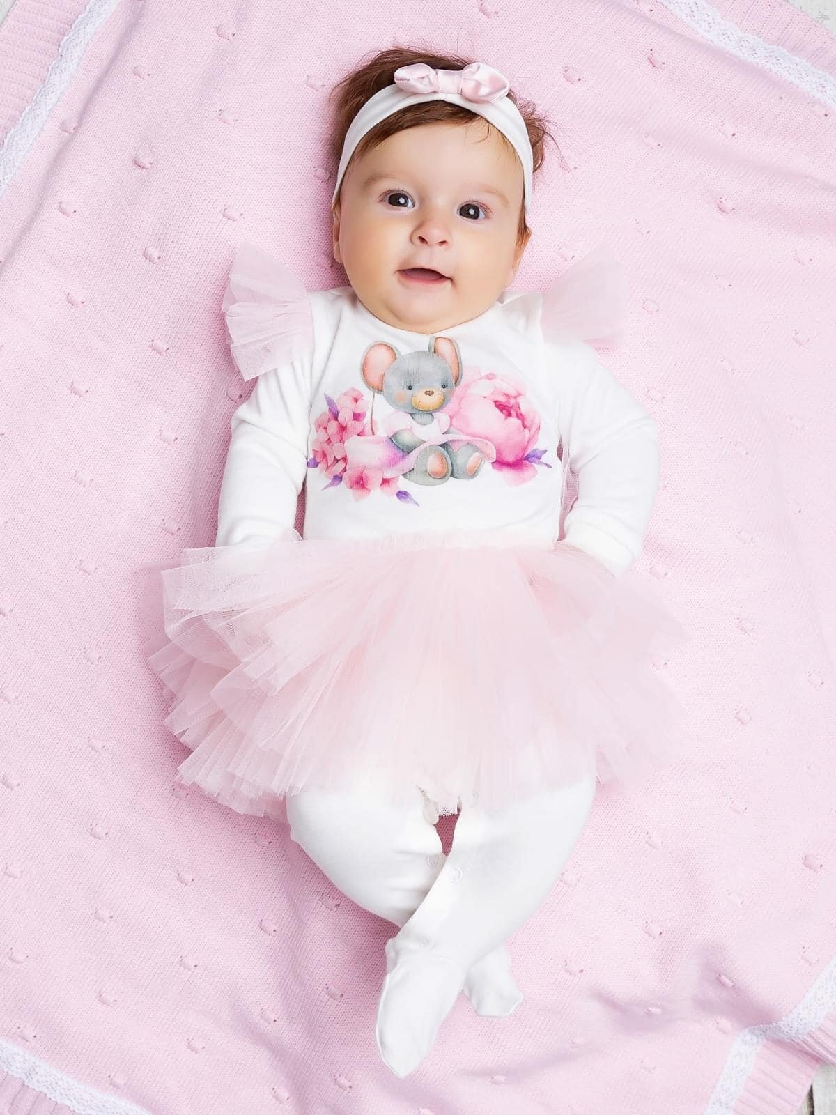Комбинезон с юбочкой и повязкой "Мышка в цветах" , размер 74 информация: