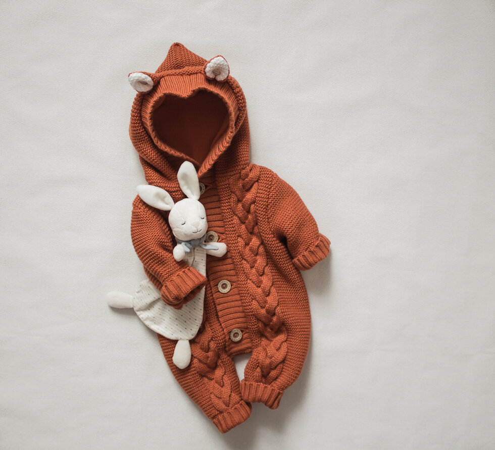 10 цен на Комбинезон вязаный 30% шерсти, 62 размер (0-3мес), MAMINY ZAPISKY, ушки, терракотовый