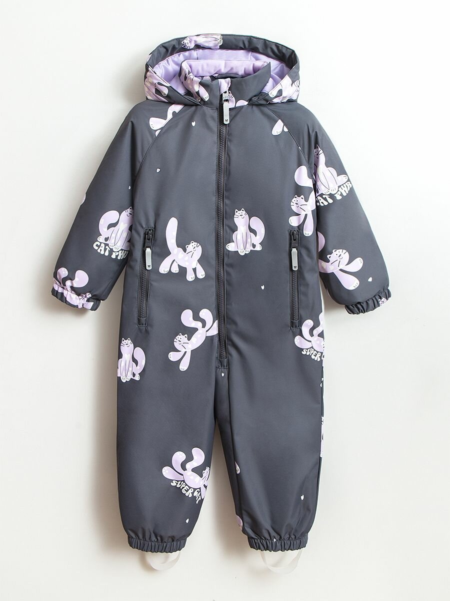 Комбинезон Nice cat, закрытая стопа, размер 56, серый