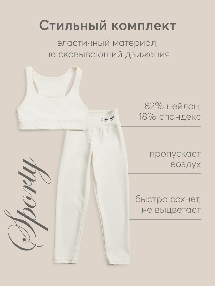 10 цен на 50680, Спортивный костюм от Happy Baby, для девочки, комплект, легинсы и топ, молочный, размер 98-104