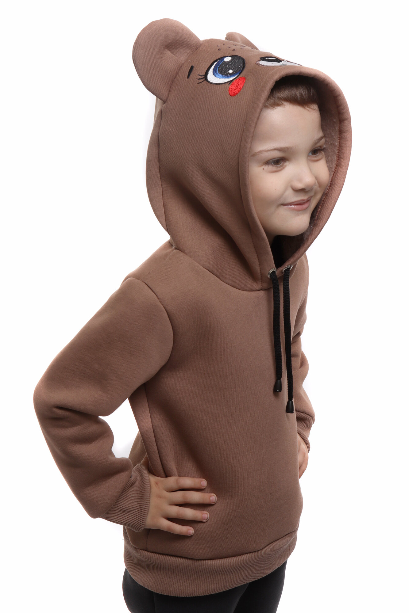 146-К2 Костюм детский утепленный, худи с капюшоном, с ушками и вышивкой Мишка, цвет-кофе, размер 86 информация: