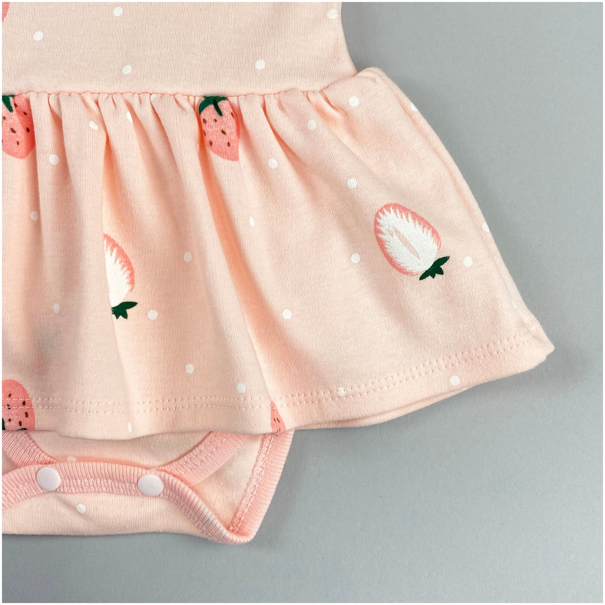 Боди платье детское для девочки с коротким рукавом, Клубнички, розовое, для новорожденных, праздничное 20 (62-68) 2-3 мес. информация: