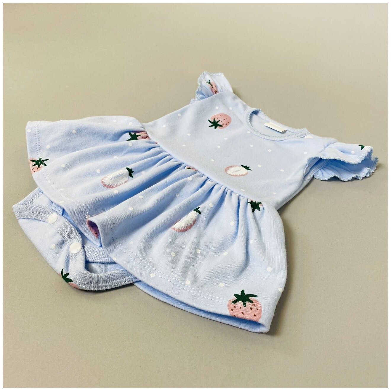 Боди платье детское для девочки с коротким рукавом, Клубнички, голубое, для новорожденных, праздничное 20 (62-68) 2-3 мес. информация: