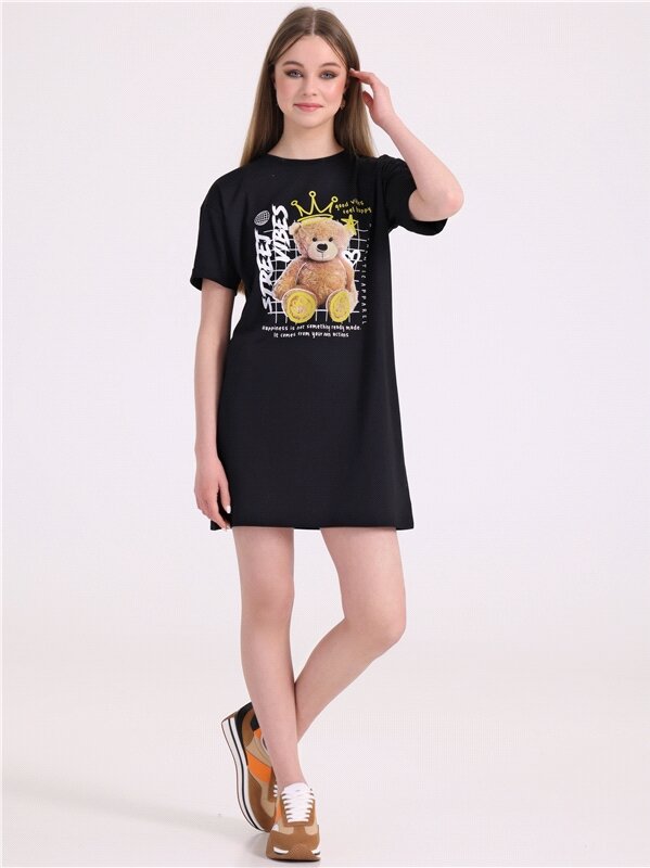 Отзывы на Платье - футболка для девочки летнее туника подростковая Апрель 1ДПК4284001/1425/599/*/3407/*/*/* черный,коричневый 88-164