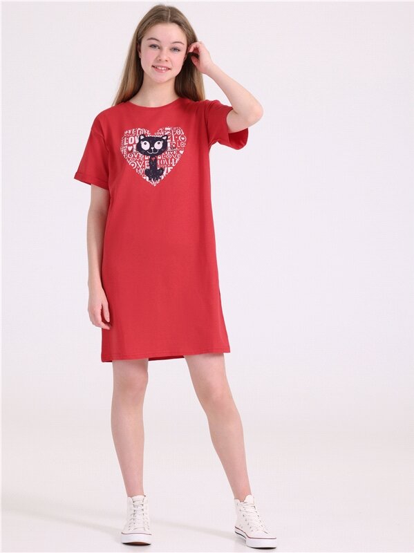Платье - футболка для девочки летнее короткое туника детская Апрель 1ДПК4284001/1425/2014/*/2348/*/*/* красный 76-146 информация: