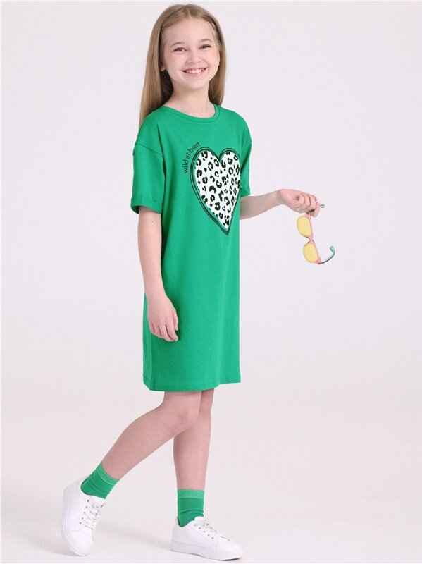 Платье - футболка для девочки летнее туника детская Апрель 1ДПК4284001/1425/2018/*/3387/*/*/* зеленый,черный,белый 68-134 информация:
