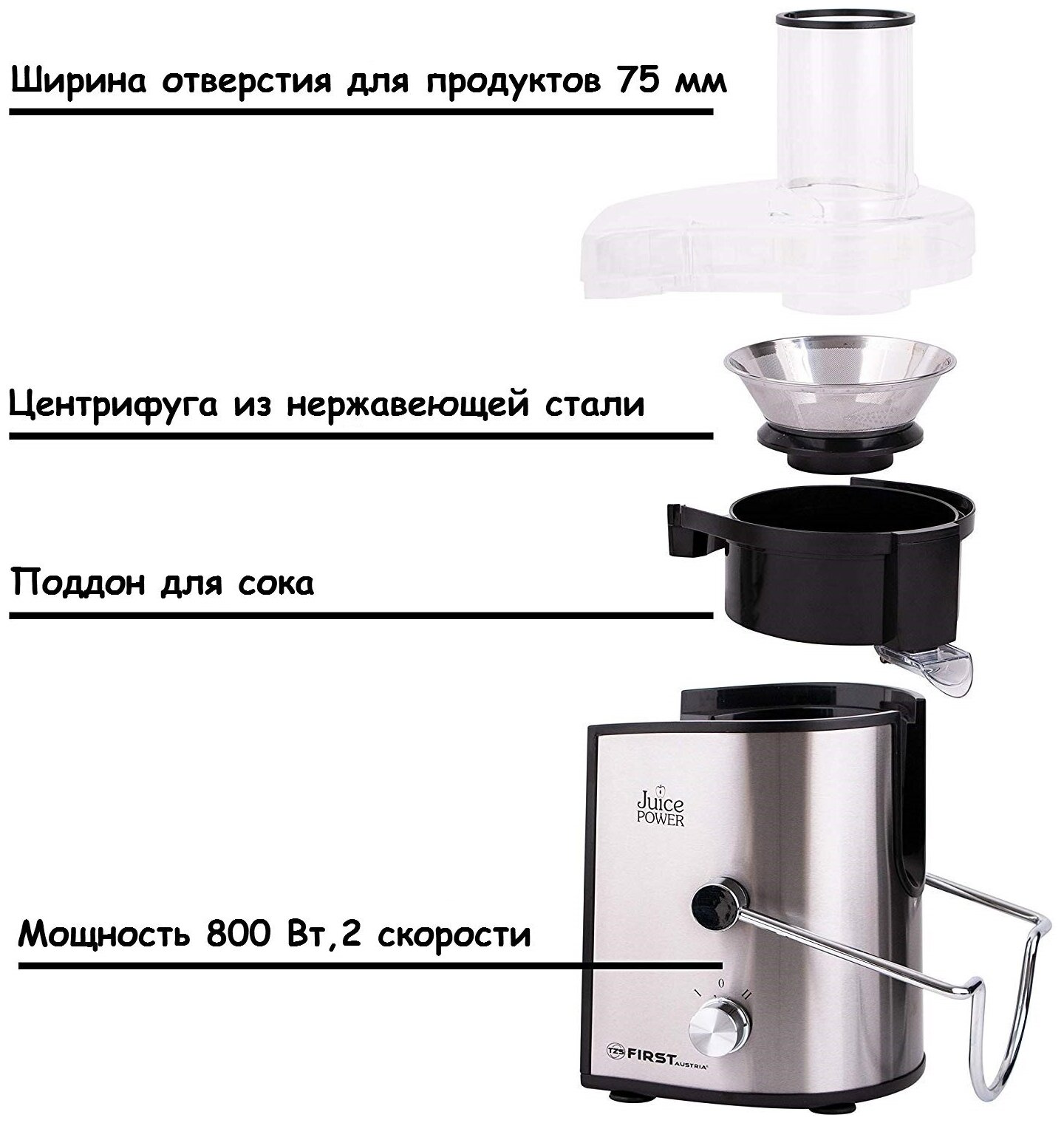5206-2 Соковыжималка FIRST Мощность: 700 Вт.2 скоростных режима.Контейнер для мякоти: 1.5 л.Black