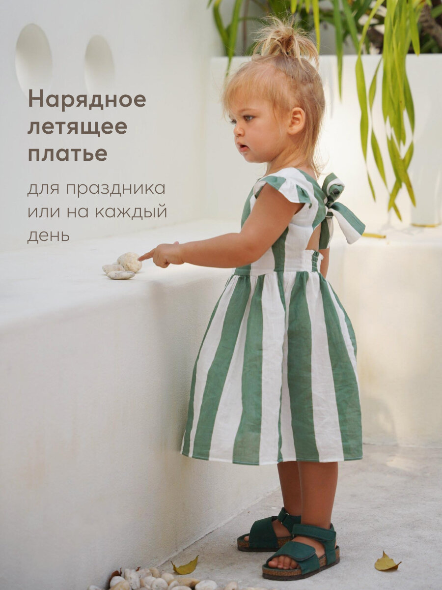 Отзывы на 88158, Платье для девочки Happy Baby, сарафан для девочки летний из хлопка, с пышной юбкой, зеленая в полоску, размер 122-128