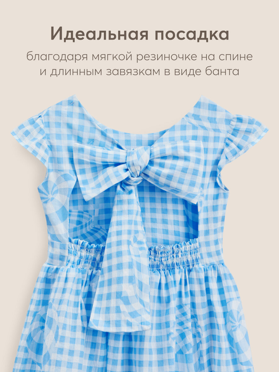 10 цен на 88158, Платье для девочки Happy Baby, сарафан для девочки летний из хлопка, с пышной юбкой, голубая в клетку, размер 98-104
