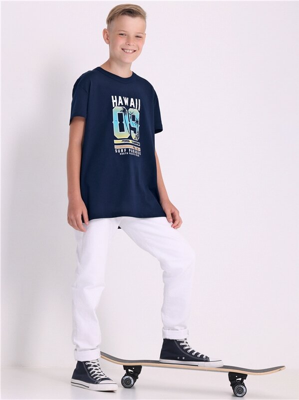 Футболка для мальчика оверсайз с принтом Апрель 1ПДФК4518001/1311/1902/*/2434/*/*/* синий,голубой,белый 72-140 информация: