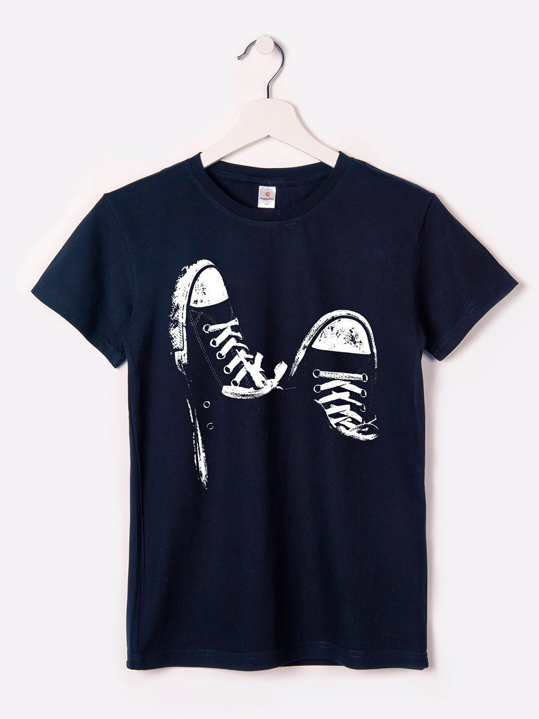Детская футболка с принтом для мальчика для девочки хлопок HappyFox, HF55011M размер 122, цвет кеды.т.синий 509 ₽