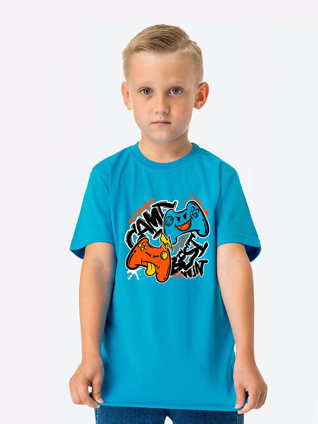 Отзывы на Футболка с принтом детская хлопковая HappyFox HF55011M game.бирюза 140