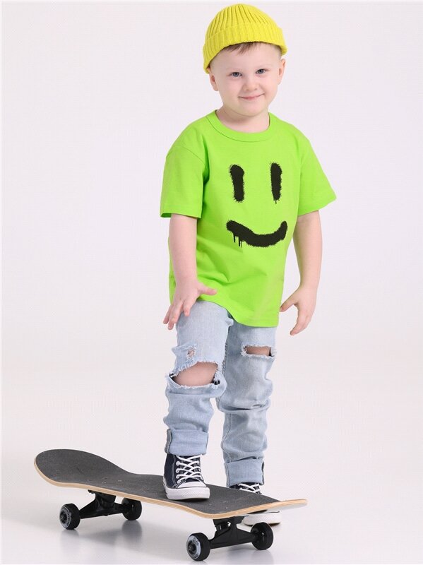 Футболка для мальчика оверсайз с принтом хлопок 100% Апрель 1ПДФК4331001/1425/2508/*/3300/*/*/* зеленый,желтый,черный 54-104 500 ₽