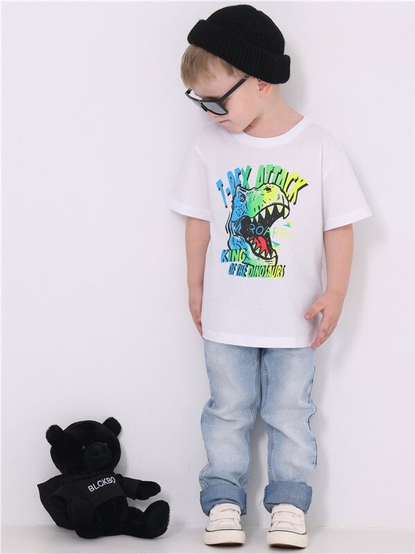 10 цен на Футболка для мальчика белая оверсайз с принтом хлопок 100% Апрель 1ПДФК4331001/1425/31/*/3416/*/*/* белый,голубой,желтый,зеленый 52-98