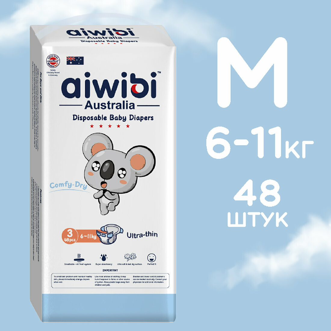 Подгузники детские AIWIBI Comfy dry M (6-11 кг) 48 шт айвиби, памперсы информация: